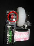 - Ostrożnie wyjmij kółeczko z uchwytu, a miejsce zaznaczone poniżej czerwonym kółkiem bardzo ostrożnie nasmaruj WD-40, używając kawałka papieru.