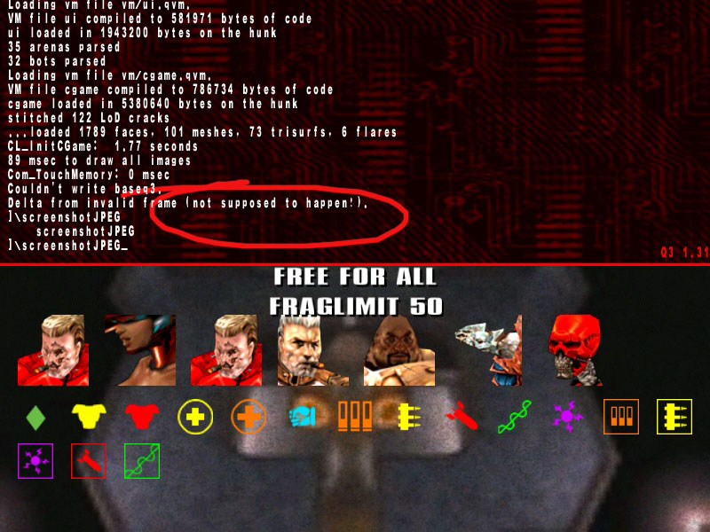 W kodzie q3 nie moglem znalezc tego bledu, bo to widocznie blad samego rdzenia graficznego :D. Prawdopodobnie zes_ral sie im jakis wskaznik na jakas klase ktora cos gdzies po kims nie tak odziedziczyla :D