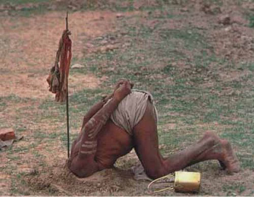 GunneR dobrze gada. To jest indyjski typek (jogin czy jak to się pisze ;), który potrafi zapanować nas własnymi procesami życiowymi. Kiedyś oglądałem dokument o takich gościach: zakopywali sobie tak samo łby, przekłuwali się w różnych dziwnych miejscach (tak, tak, tam też :p) i podwieszali się na hakach wbitych w skórę :o