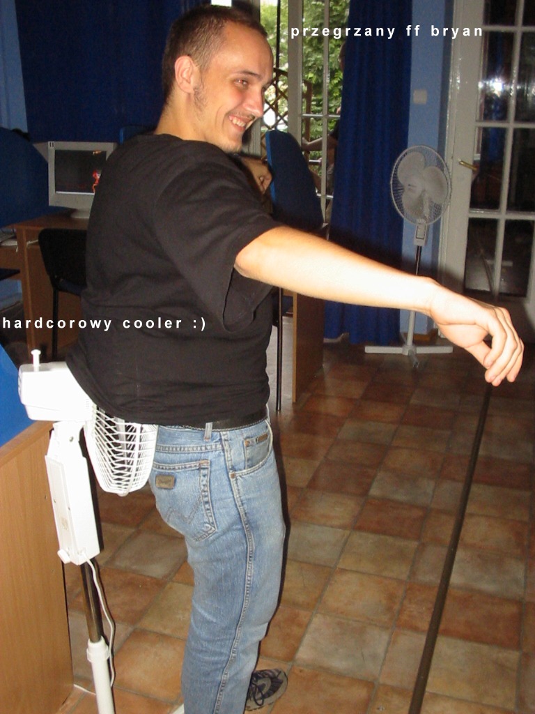 OMG gdzie on wpycha ten wentylator?! :D